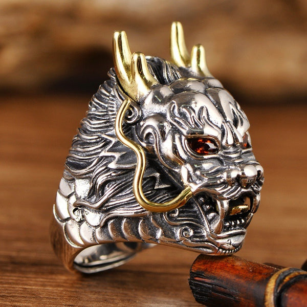 Silver Dragon King Ring - (S925 - Sterling Silver)